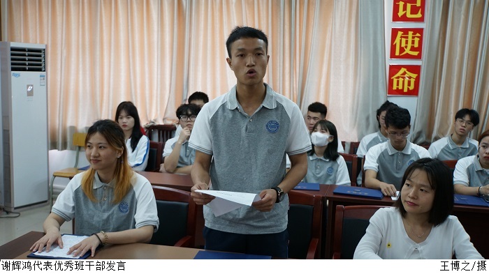 会上,杨婕、汤锐锋、谢辉鸿分别代表优秀助理班主任、优秀班集体和优秀班干部做了发言。与会领导老师为受表彰的学生先进集体和优秀个人颁发了证书。