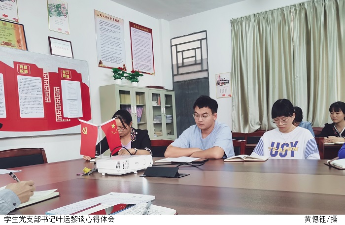 学生党支部书记叶运黎发言表示,学习党史,感触很深。百年党史是坚守信念、牢记初心的历史。作为青年辅导员,我们应该有所作为,也必须有所作为,自身要树立远大的理想,坚定信念,不忘初心,用真挚的情感、真实的故事、真切的情怀,加强对青年大学生党史教育的浸润、熏陶、感染。