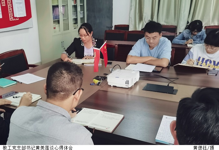 教工党支部书记黄美莲发言表示,学习党史,要站在中华民族伟大复兴战略全局和世界百年未有之大局的高度,正确认识党和人民事业所处的历史方位和发展阶段,从党史中吸取攻坚克难智慧力量。作为高校教师,无论是教育教学,还是进行科研创新,都要牢固树立初心使命意识,要坚定理想信念,让教师成为广大青年学生的人生引路人。