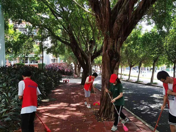 志愿者清理校道