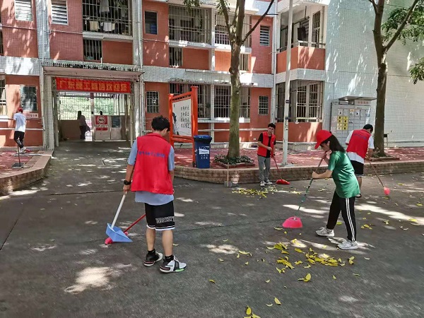 志愿者们清理宿舍周边