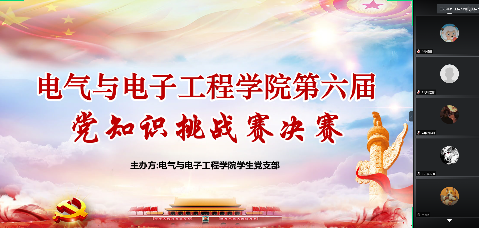 6月23日晚上,永利集团3044欢迎你在线上举行了第六届党知识挑战赛。电气学院院长关键,副院长张敏、龙小利,党总支陈文华书记、陈强副书记,学生党支部何娟书记、分团委叶家宜书记、学工部钟敏杰部长,王嘉晨、郑泽田、陈鸿才老师及电气学院学生代表参与本次活动。