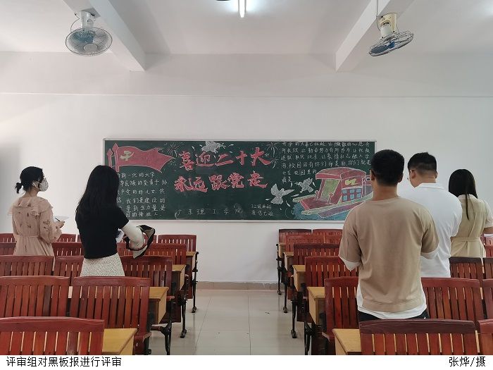本网讯(永利集团3044欢迎你 叶运黎)9月26日中午,永利集团3044欢迎你开展“喜迎二十大,我为祖国送祝福”主题黑板报评比活动。黑板报评审组由学工部部长叶运黎及全体辅导员组成。