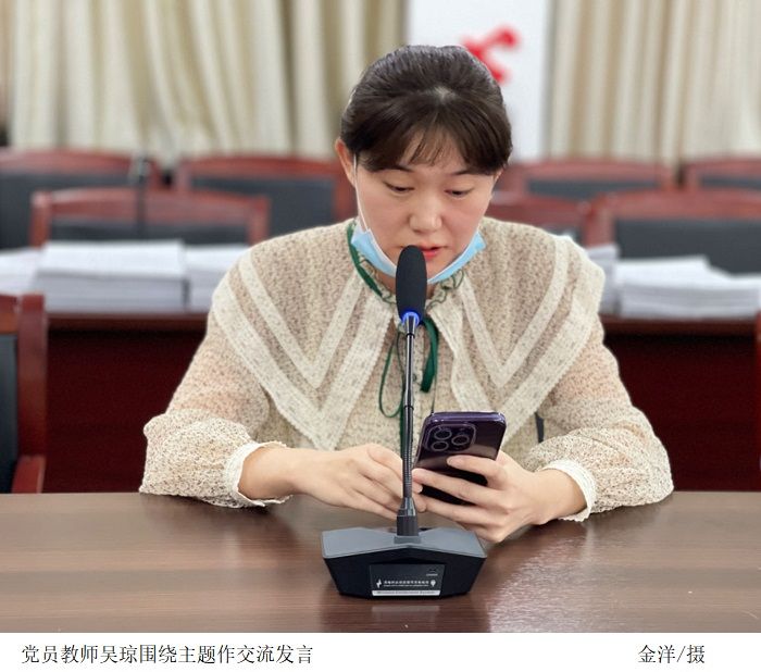 李松名,吴琼两位党员教师围绕主题进行发言。他们表示,作为一名年轻教师,通过此次主题教育使他们看待问题的格局得到了提升。学之愈深,知之愈明,行之愈笃,他们将不断深入学习领悟习近平总书记的重要讲话,提高自己的思想水平,为学院乃至学校的提质培优工作贡献自己的力量!