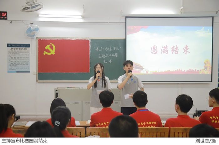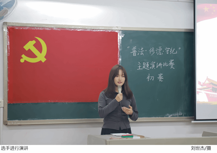 比赛过程中,选手围绕“普法修德守纪,创建优良学风”进行演讲,倡议应当增强宪法意识,践行宪法,修德守纪,共建法治校园,德治校园。选手们意气风发、铿锵有力的演讲,引起在场观众强烈的共鸣。评委根据参赛选手的演讲内容、表现力、语言表达及仪容仪表进行评分,最终决出8名晋级选手。