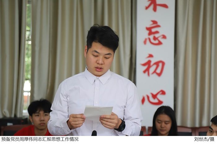 会议伊始,奏国际歌。郭锐驰等11名预备党员向党组织汇报自己在预备期间的学习工作情况,并提出转正申请。