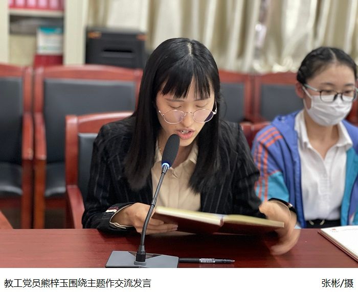 会上熊梓玉和陈思曼两位党员教师围绕主题进行发言。他们表示,作为一名党员教师,要时刻保持对党的高度忠诚,积极践行党的领导原则,坚决维护党中央权威和集中统一领导。只有坚持党的全面领导,才能够更好地推动学院事业的发展,确保教育教学质量的提升。