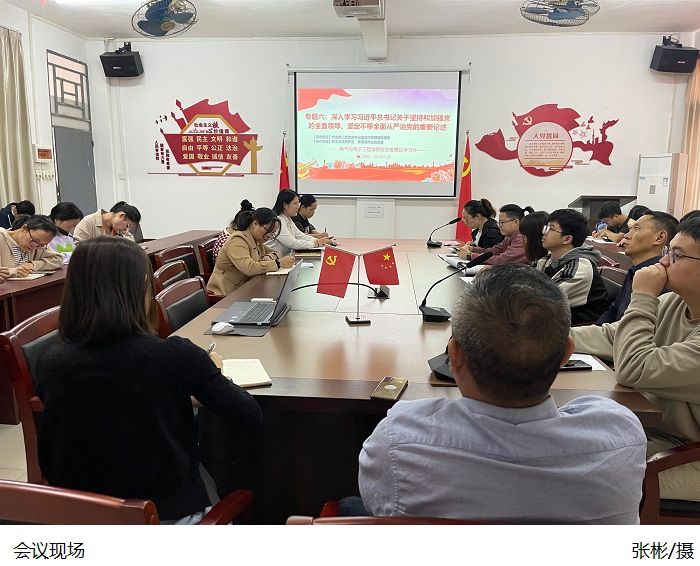 本网讯(永利集团3044欢迎你 张彬)11月28日下午,永利集团3044欢迎你党总支在7203会议室召开深入学习习近平总书记关于坚持和加强党的全面领导、坚定不移全面从严治党的重要论述专题会议。会议由学生第二党支部书记金洋主持,全体党员教师参与会议。