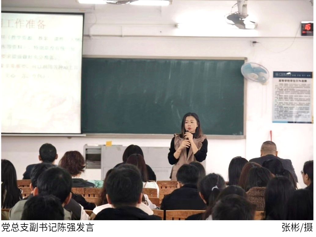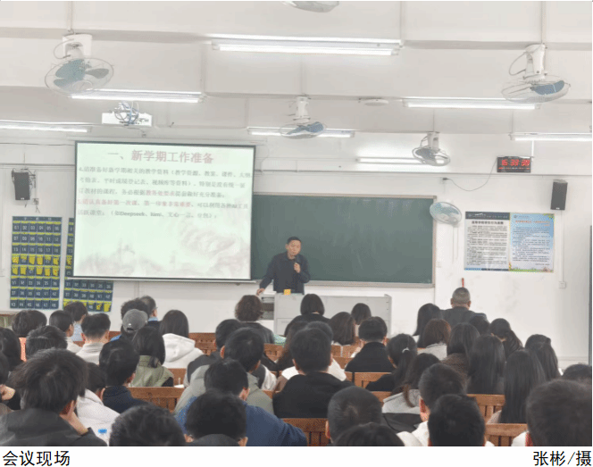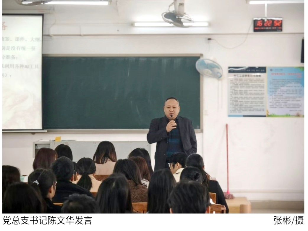 陈文华围绕重点工作进行全面部署。他首先表彰在运动会、元旦晚会等集体活动中表现突出的教师团队,其展现的担当精神与奉献意识为全院树立了典范。随后系统阐释学院党组织建设规划,强调全体党员应带头培育"党建引领、全员共建"的工作格局,通过主题党日、志愿服务等活动深化党建与业务融合。针对师德师风建设,陈文华明确要求全体教师严守职业准则,尤其在网络言论引导方面,需以身作则培养学生正确的价值导向。针对2025届学生培养工作,要求各专业在3月底前制定个性化职业指导方案,建立实习企业动态跟踪机制,切实保障学生就业质量。会议最后特别强调,2月24日开学首日全体任课教师须提前备齐教案、调试教学设备,以最佳状态迎接新学期第一课。
