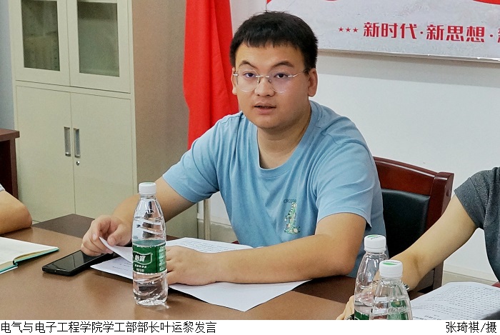 叶玮俊代表2022级学生助理班主任表态发言,全体2021级学生助理班主任将进一步发挥引领作用,主动沟通协调,把握工作重点,在指导2022级新生成长的同时促进个人全面成才,为成为肩负民族复兴使命的时代新人而共同奋斗。