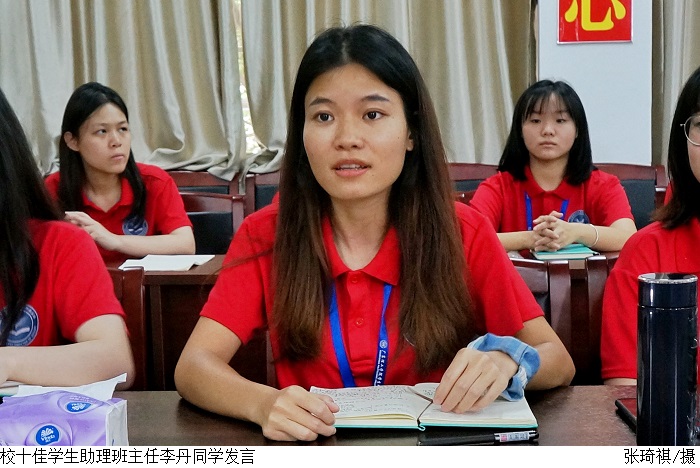 校十佳学生助理班主任李丹同学充满感情地回忆了自己与班级、与新生之间的故事,用朴实的语言,诠释了学生助理班主任最无私的爱,她在发言中表示,学生助理班主任付出的是一滴滴汗水,收获的是沉甸甸的情感和与学生的共同成长。