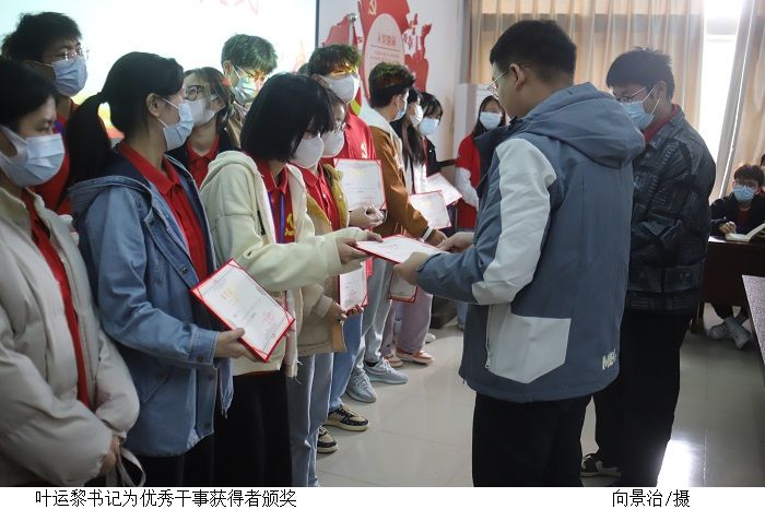 会议最后,叶运黎为本学期获得优秀干事和优秀干部的成员颁奖,并希望他们不忘初心、再接再厉、走在学习和工作的最前排。