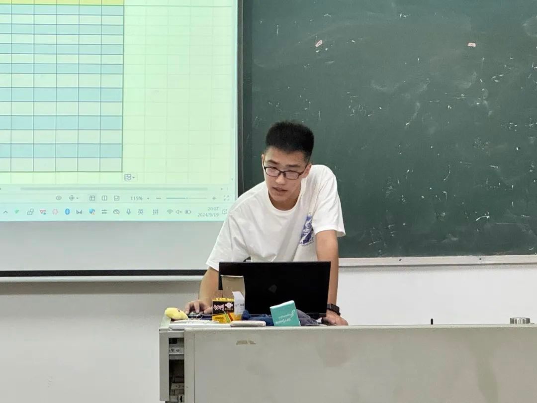 此外,他还向新干事们介绍了如何运用系统化的表格系统记录比赛成绩。他鼓励采用系统化方法记录工作表格,提高工作效率,详细阐述包括比赛数据的输入、平均分数的计算以及成绩排名的生成等环节,强调了系统化表格在数据管理方面的优势,并期望新干事们能够熟练掌握相关技能。