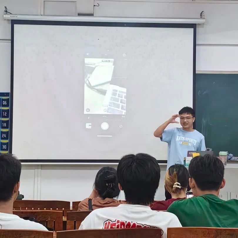 其次,他现场使用相机进行教学,通过拍摄在场的学生模特,向新任干事们讲解了相机的结构及其基本工作原理,并生动形象地展示了参数设置对图像的影响。