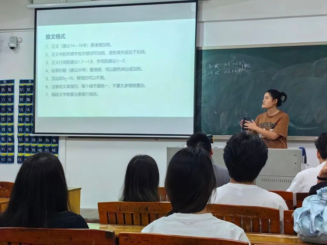 其次,她重点讲解了秀米的操作方法,并规范了推文编写格式,包括字体大小、首行缩进、标题统一、前后组距等。
