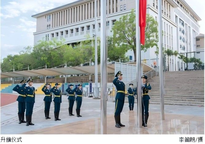 上午七时许,国旗护卫队迈着铿锵有力的步伐走向升旗台,动作整齐威严。国歌奏响,学生们齐声高唱,目光崇敬。国旗徐徐升起,迎风飘扬。学生的热忱在此刻都化作对国旗的热爱,彰显国家尊严,传承民族精神。
