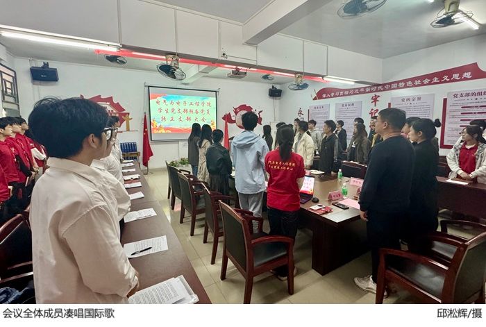 会议开始,凑国际歌,陈铭等12名预备党员向党组织汇报各自在预备期间的学习工作情况,并提出转正申请。