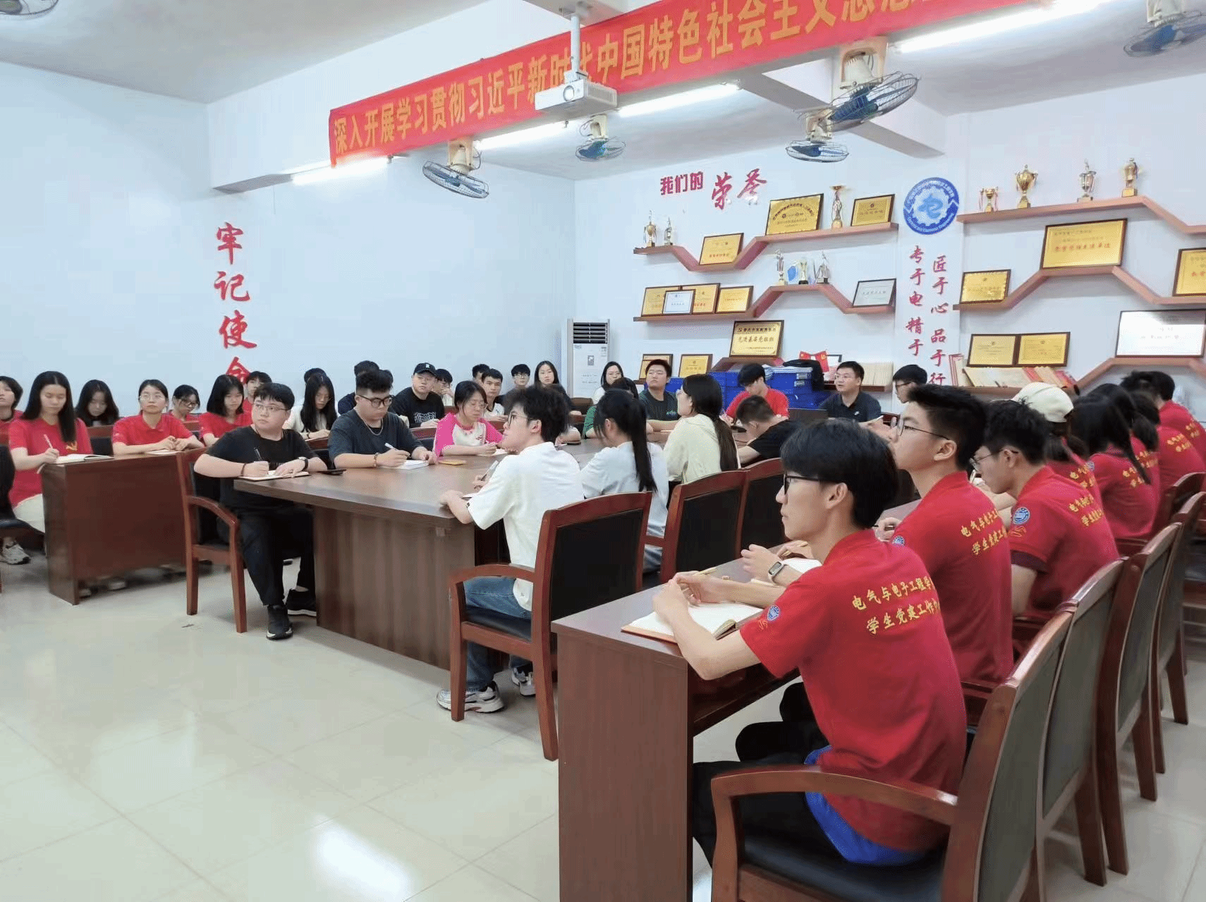 4月26日中午,永利集团3044欢迎你学生党支部于7栋203室召开理论学习会,由学生第一党支部叶运黎书记,学生党员、发展对象及学生党建工作中心干事共同参与。