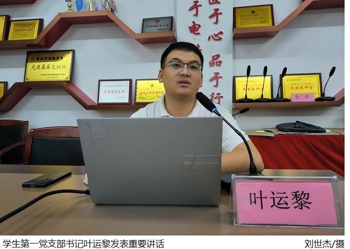 会上,叶运黎带领大家学习了习近平总书记与大学生在一起时的重要讲话精神,他强调当代大学生应该具备立志、奋斗、学习、锤炼的精神品质,青年要肩负起使命,担当起时代重任。他希望全体学生党员在提高政治站位、端正态度言行、培养道德认知、对标先进典型的生动实践中真正推动学习贯彻习近平新时代中国特色社会主义思想走深走实,把伟大思想的真理力量转化为指导实践、推动工作的实践力量,把学生第一党支部建成坚强的战斗堡垒。