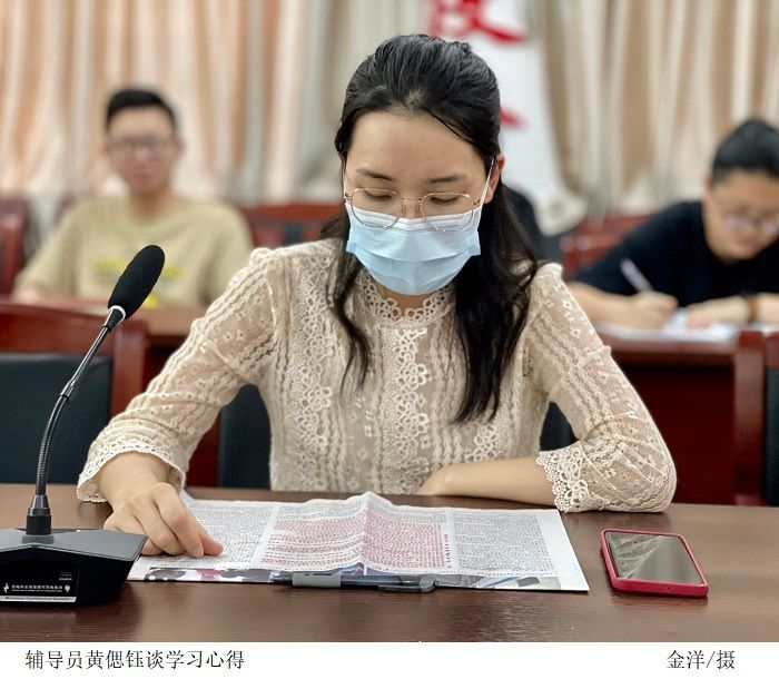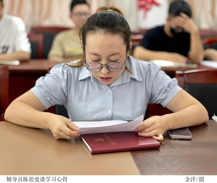 辅导员陈思曼、金洋、黄偲钰谈学习心得。他们表示作为教育工作者,会贯彻落实党的教育方针,落实好立德树人的根本任务,践行社会主义核心价值观,当好学生成长领路人,为国家培养德智体美劳全面发展、堪当民族复兴重任的时代新人。