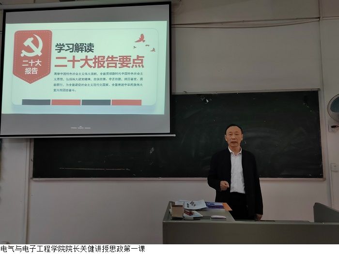 本网讯(永利集团3044欢迎你 叶运黎)2月28日上午,永利集团3044欢迎你院长关健在5204教室以“学习二十大,奋进新征程”为专题开讲新学期第一堂思政课,2022级本科电气3-4班学生到场聆听。