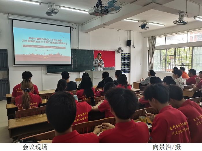 会议上,叶运黎强调全体学生要学原文、谈体会、谈信念、谈责任,不断加深对党的二十大精神的认识和理解,并倾力把党的二十大精神贯彻落实到学习生活中去。他指出,党的二十大是一次承前启后、继往开来、具有里程碑意义的重要会议,会议主题明确宣示了在新征程上举什么旗、走什么路、以什么样的精神状态、朝着什么样的目标继续前进。习近平总书记的报告主题鲜明、内涵丰富、思想深邃、高屋建瓴、鼓舞人心、催人奋进,我们要全面系统学、丰富载体学、营造氛围学,做到学习跟进、认识跟进、行动跟进;推动学用结合、学做结合,坚持政治自觉、理论自觉、行动自觉。