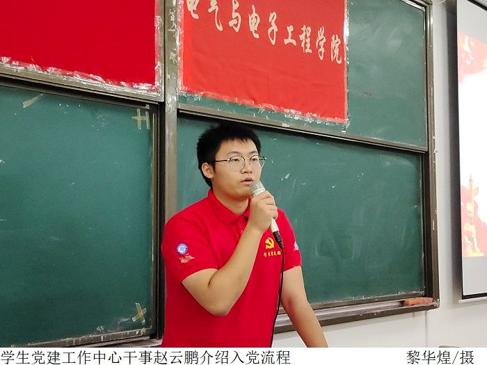 会议最后,学生党建工作中心干事赵云鹏介绍了成为中共党员的基本流程,讲述了入党申请书、思想汇报的书写要求。