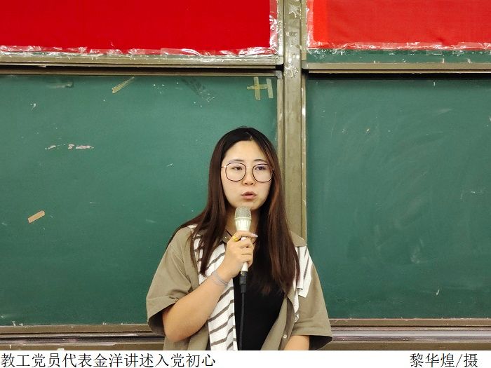 金洋以自己的入党故事和思想转变为切入点,系统地阐释了自己成为党员的发展历程,她希望同学们能不断加强理论学习,做到在学习党的基本理论与学习科学文化知识相结合的同时端正自己的入党动机,坚定入党决心,在规范自身行为的同时努力向党组织看齐,成为有共产主义信念的新时代先锋战士。