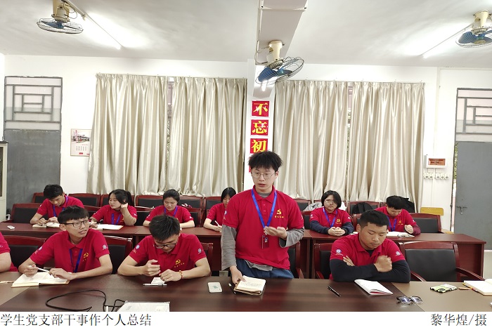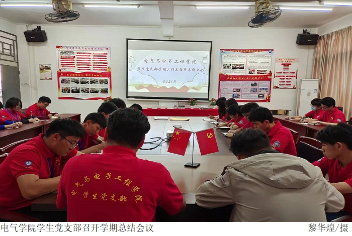 叶运黎书记对部门本学期的党建工作给予肯定的同时系统性地指出了部门在本学期存在的优点和不足,为部门今后发展构想基本蓝图,他表示学生党支部干事在工作中应具备“四个意识”,积极开展党史学习教育,推进党史进校园活动,以实际行动践行初心使命,以担当作为给党旗增辉添彩,积极筹划迎接党的二十大活动。学生党支部干事陈企宙直面点出了本学期工作中存在的错误,就问题根本提出了改进措施,并表明干事们应积极响应“强信念、有担当、行大任”的号召,推进党史学习教育进校园活动,认真贯彻党史学习教育的落实,强化思想政治引领作用,心系党史国情。学生党支部干事周厚伟对下学期的党建工作进行了基本部署,他希望学生党支部干事能重视“三会一课”在党史学习教育中的重要性,继续贯彻落实电院学习党史学习教育精神的相关要求,做到理论与实际相结合,以饱满的热情迎接下学期的工作。