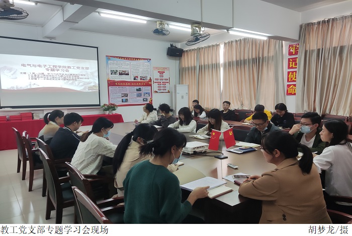 11月16日15:00,教工党支部召开专题学习会议。教工党支部书记黄美莲指出,党的十九届六中全会是我们党在“两个一百年”奋斗目标历史交汇关键节点上召开的一次具有里程碑意义的重要会议,学习宣传贯彻党的十九届六中全会精神是我们当前和今后一个时期的重大政治任务。