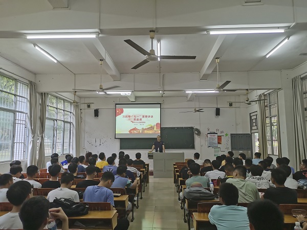 9月15日,陈文华书记围绕社会主义基本制度的确立,详细讲述了党的发展历程,回顾了中国人民为拯救民族危亡进行的艰难探索,阐明了我们党领导人民推进民族复兴取得的非凡功绩。陈书记希望同学们能够从百年党史中汲取精神滋养、感悟思想伟力、凝聚强大动力,做到知史爱党,知史爱国,继承先辈们的革命精神,在中华民族伟大复兴新征程上继续奋斗。