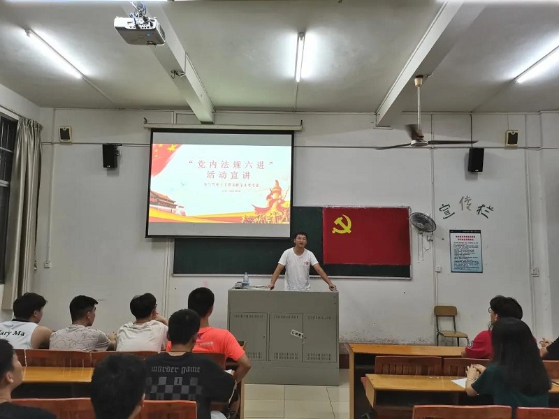 本网讯(永利集团3044欢迎你 叶运黎)9月8日晚上,永利集团3044欢迎你学生党支部在5栋102教室开设“党内法规六进”活动宣讲课,学生党支部叶运黎书记出席宣讲会,电气学院入党积极分子、学生党支部干事共同参与了此次宣讲会。